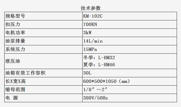 KM-102C型缩母机是我公司在102B基础上的进一步升级,该机采用液压复位,避免了复位弹簧疲劳损坏的现象,使机器张口增大,速度增快,提高工作效率。该机沿用固定活塞式结构,更加适用缩母、缩套等工况,使工作更加轻松。调节定位手轮,可快速方便定位扣压位置,有机玻璃护罩,提高您工作的安全保障。