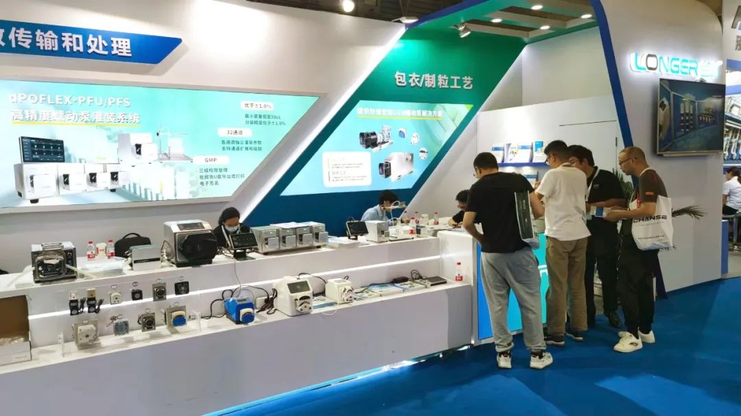 On the first day, Langge showcased its dLSP 501S/dLSP 501L digital split-type syringe pumps, dPOFLEX® PFU/PFS high-precision filling and dispensing systems, dPOFLEX® industrial high-flow peristaltic pumps, intelligent pump L100-1FS, intelligent peristaltic pumps, OEM peristaltic pumps, and Bestcon® peristaltic pump silicone tubes. These products offer a comprehensive solution for the entire process from research and development to production in the pharmaceutical industry, covering multiple stages such as culture medium preparation, fermentation, harvesting, purification, filling, granulation, and coating. Visitors to the exhibition flowed continuously.