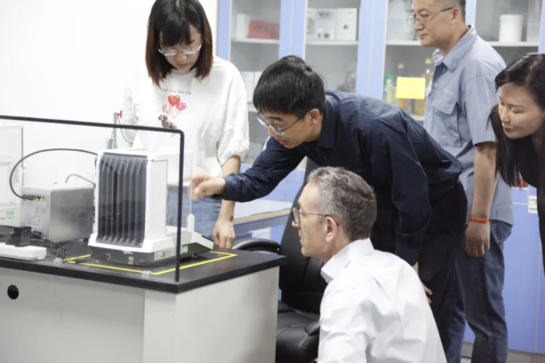 In addition to visiting the production line, Steve's team also toured the R&D lab, where R&D Vice President Jerry provided detailed explanations and demonstrations of Lang's new products. Steve encouraged continued close collaboration with clients to drive innovation and support the development of various industries, including local life science research and biopharmaceuticals.