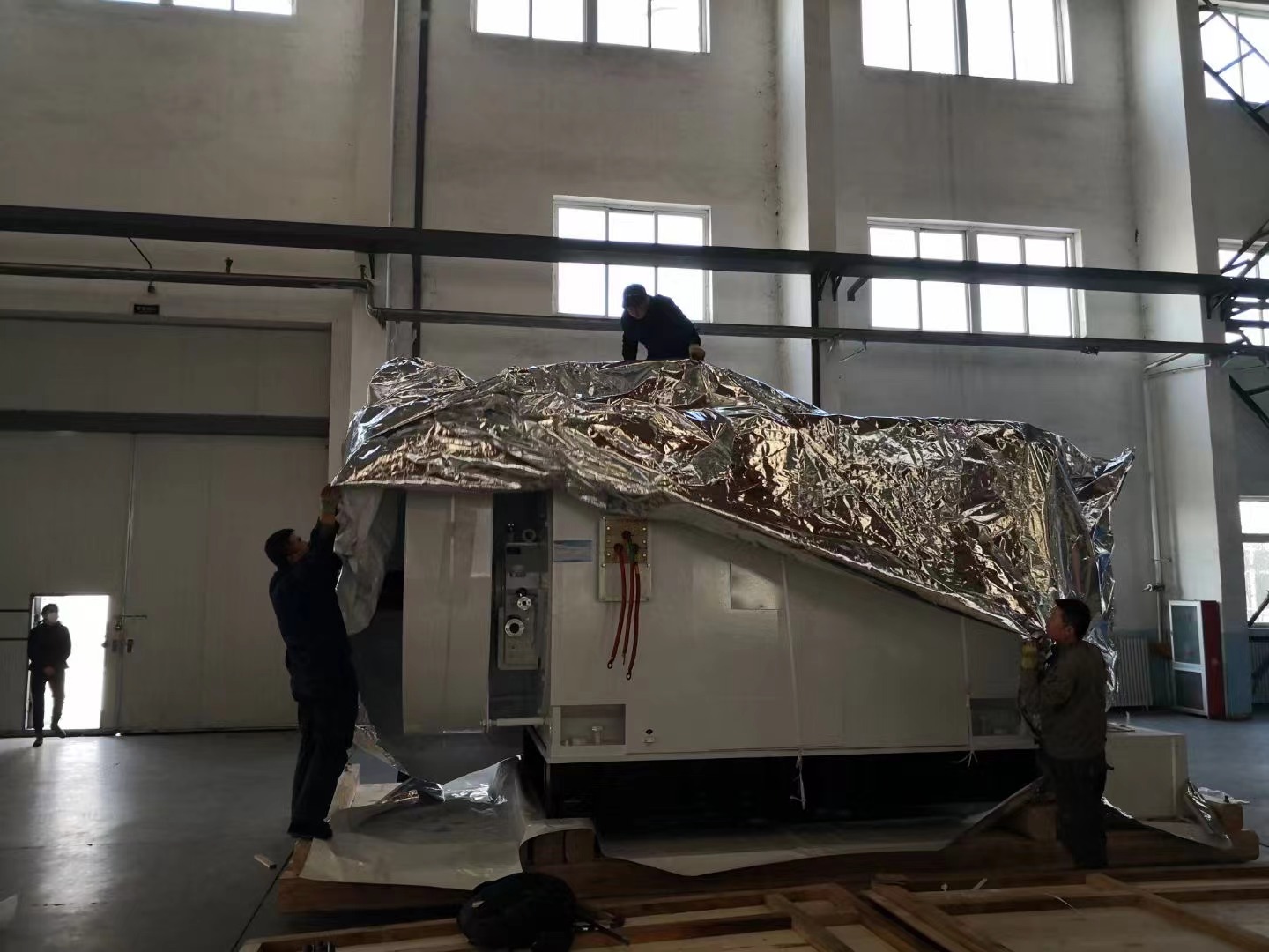 2021年10月21日,沈阳正安包装有限公司为辽宁重型电机制造有限公司包装了一台出口南非的电机。电机净重38吨,由于超高,不得不将电机上的冷却器拆下来。两箱毛重分别为36.5吨和6吨。据用户反映,由于目前我国出口量非常大,船位紧张,船东为提高船仓利用率,要求包装箱能够满足堆码要求,即要求这台电机的两箱能够叠放在一起,也就是说装冷却器的毛重6吨箱要放在电机本体箱上,电机本体箱顶盖要能承受6吨冷却器箱。正安包装为满足用户要求,对两箱进行了精心设计、细致的制造和包装。经过今天包装后试吊和叠码试验,获得圆满成功!