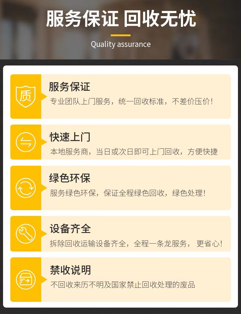 Highly purchase large-scale machinery and equipment, factory equipment, refrigeration equipment, hotel equipment, central air conditioning, transformers, generators, elevators, industrial boilers, kitchenware, molds, waste cables, and metals.