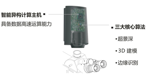 The Micro 3D Ultra-Depth of Field Camera combines high integration and flexibility. It's easy to operate, with all functions accessible via the mouse. Its built-in core technology ensures powerful intelligent interlinking performance for microscopic systems: the integrated intelligent heterogeneous host can directly execute a large amount of computation tasks instead of a computer, offering fast operation and stable performance; real-time ultra-depth of field and 3D modeling algorithms enable multi-directional stereoscopic 3D observation and measurement analysis for microscopic systems; the automatic edge recognition algorithm further enhances the efficiency of microscopic observation and batch operations.