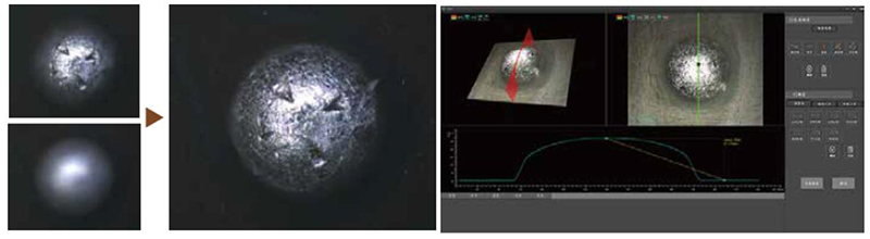 ●2D, 3D Image Acquisition: Overcomes traditional microscope field of view and depth of field issues, enabling the capture of product 3D morphology and subsequent 3D data analysis.