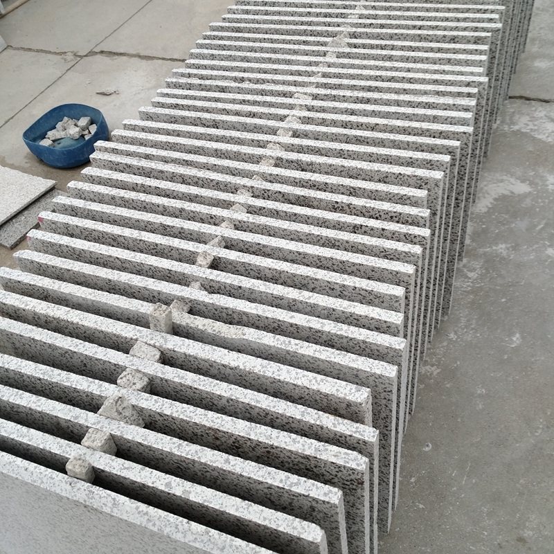 White marble granite slab, burnished finish, sesame white, smooth stair treads, lichee surface marble curbing stone